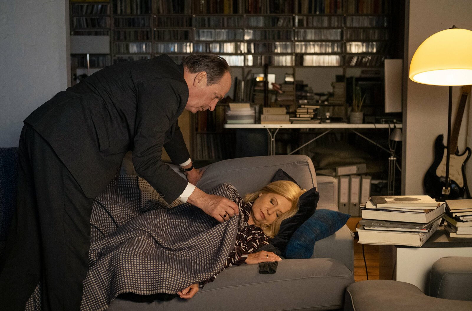 HeimatlosMarkus Gellert (Herbert Knaup, l.) hat der heimatlosen Isa von Brede (Sabine Postel, r.) Unterschlupf in seiner Wohnung gewährt. Sie schläft auf einem Sofa ein, liebevoll deckt er sie zu.Bild: © "Bild: ARD/Christine Schroeder (S2+). ARD Programmdirektion/Bildredaktion