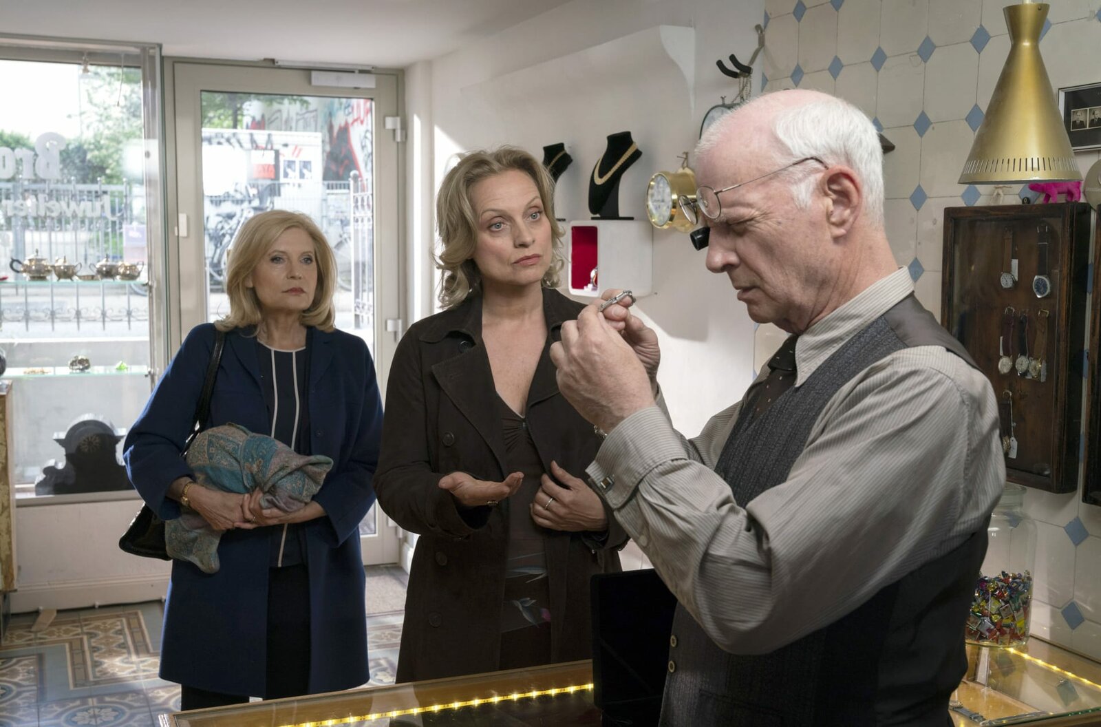 ÜberdosisIsa von Brede (Sabine Postel, l.) hilft dem befreundeten Uhrmacher Jannik Brodersen (Peter Meinhardt, r.). Seine Kundin Gerda Sahling (Catherine Flemming, M.) beschuldigt ihn, ein Schmuckstück, das sie ihm zur Reinigung anvertraut hat, durch eine billige Imitation ersetzt zu haben.Bild: © ARD/Georges Pauly