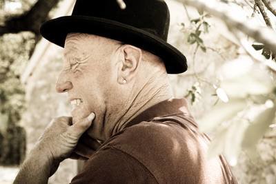 Folge 15Robert sitting perfectly still with a rattlesnake resting on top of his head and another snake on his legs.Bild: © Copyright: Discovery Communications, Inc. For Show Promotion Only
