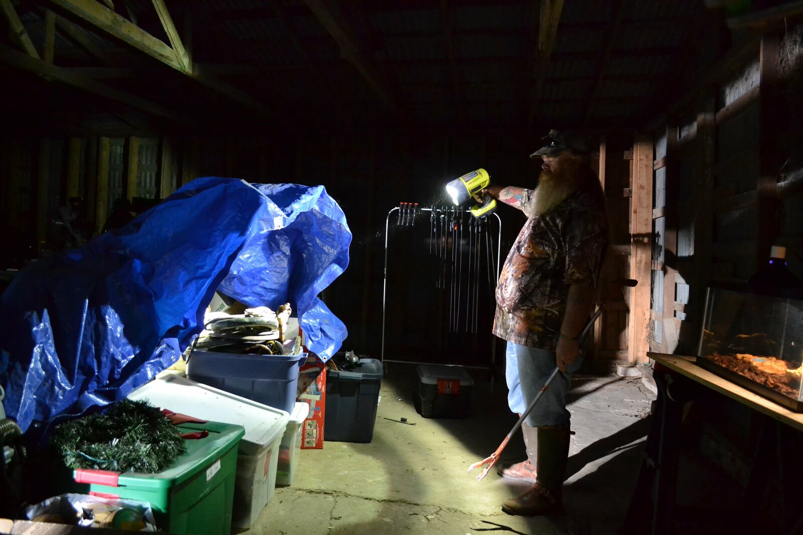 Folge 12Riley examining Leroy?s snake waresBild: © - Discovery Networks Picture Publicity. This picture may be used solely for Discovery Networks programme publicity purposes. May be reproduced in editorial press & listings in connection with the curr