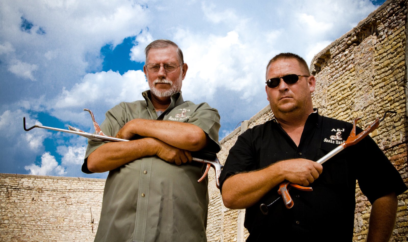 Folge 13Fearless snake wranglers Robert and Shawn show off their skills with the diamond backs.Bild: © Discovery Communications