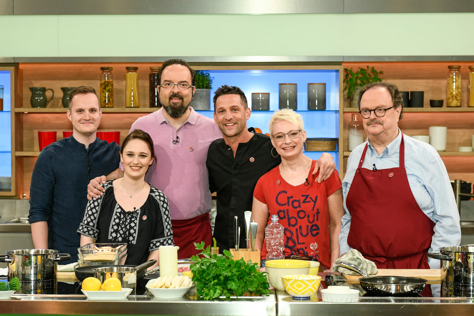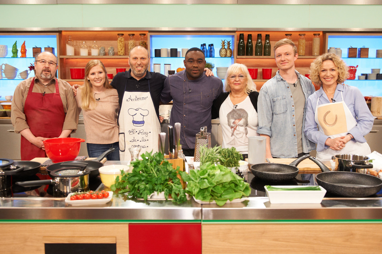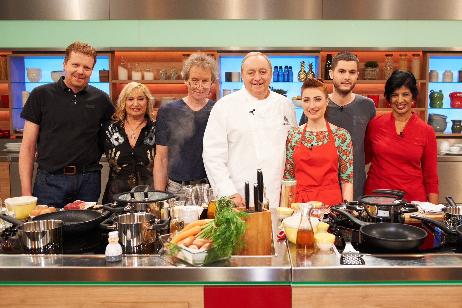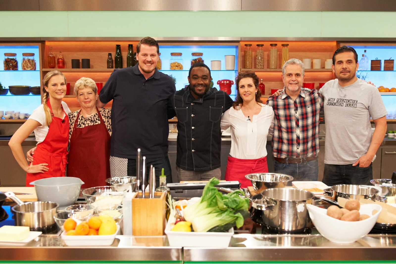 Alfons Schuhbeck sucht den SpitzenkochGisela Nießlbeck, Harry Grötz, Annette Lang, Nelson Müller, Hans-Ludwig Klein, Julia Fassbender und Nicholas Fanselow.Bild: © ZDF und Gunnar Nicolaus