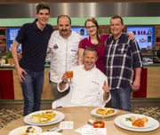Alexander Kumptner sucht den SpitzenkochThomas Heiduk, Susanne Bern, Alexander Kumptner, Kai Schwarz, Sidney Schlange.Bild: © ZDF und Gunnar Nicolaus