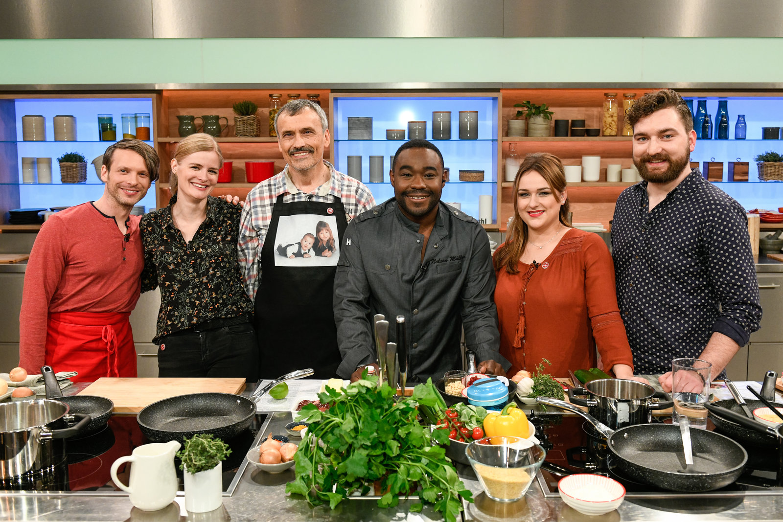 Nelson Müller sucht den SpitzenkochPritam Hackenberg, Madeleine Ulke, Gerhard Kuen, Nelson Müller, Sina Nathalie Grafen, Ute Lange-Ensmann, Thomas Schwieger.Bild: © ZDF und Gunnar Nicolaus
