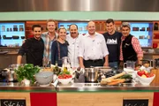 Johann Lafer sucht den SpitzenkochMattia Giannone, Christian "Stübi" Stübinger, Stefanie Maus, Johann Lafer, Michael Fucker, Christian Hölker und Jakob "Jakl" Wolf.Bild: © ZDF und Gunnar Nicolaus