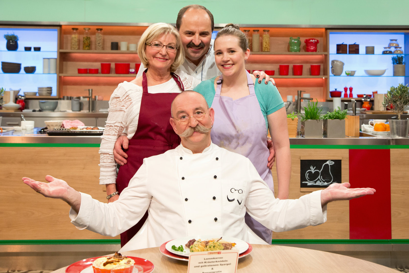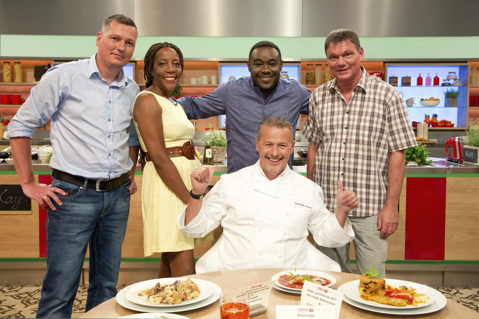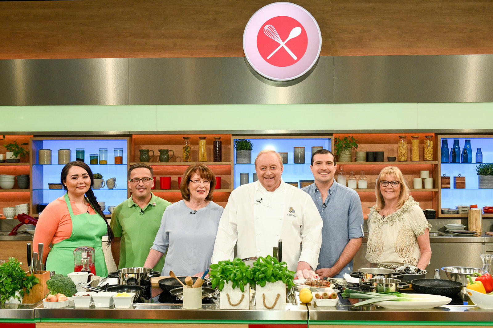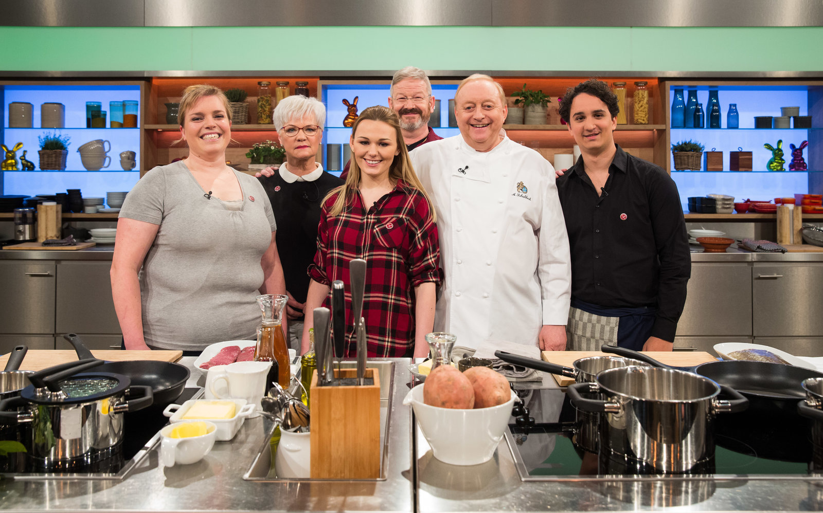 Johann Lafer sucht den SpitzenkochHannelore Scherzer, Johann Lafer, Martin Baudrexel, Jessica Schewel, Cordula Wollny, Karl-Heinz SchäferBild: © ZDF und Gunnar Nicolaus