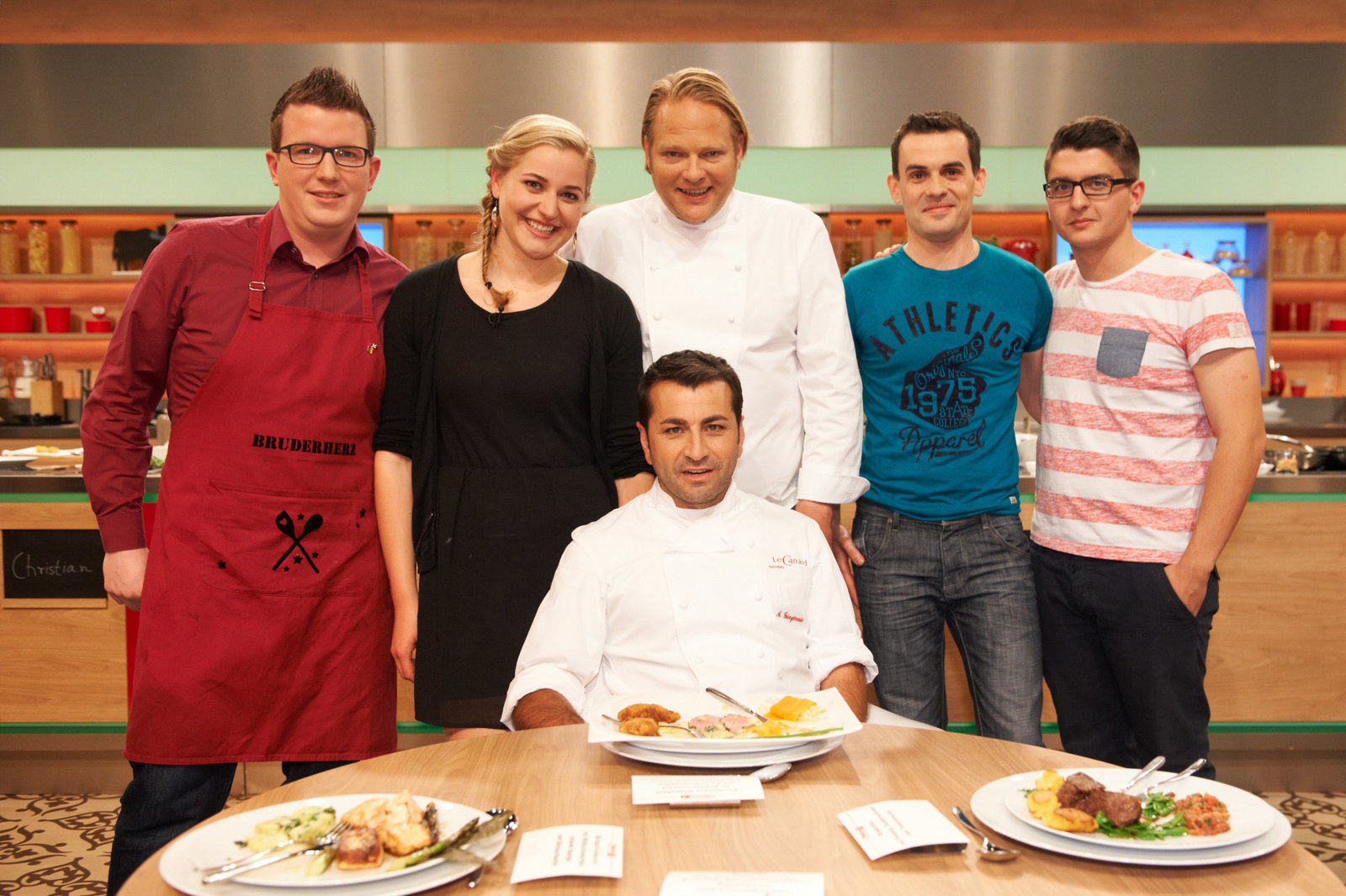 Björn Freitag sucht den SpitzenkochTim Biebighäuser-Becker, Julia Fassbender, Ali Güngörmüs, Björn Freitag, Christian Wagner, Christoph KistBild: © ZDF und Gunnar Nicolaus