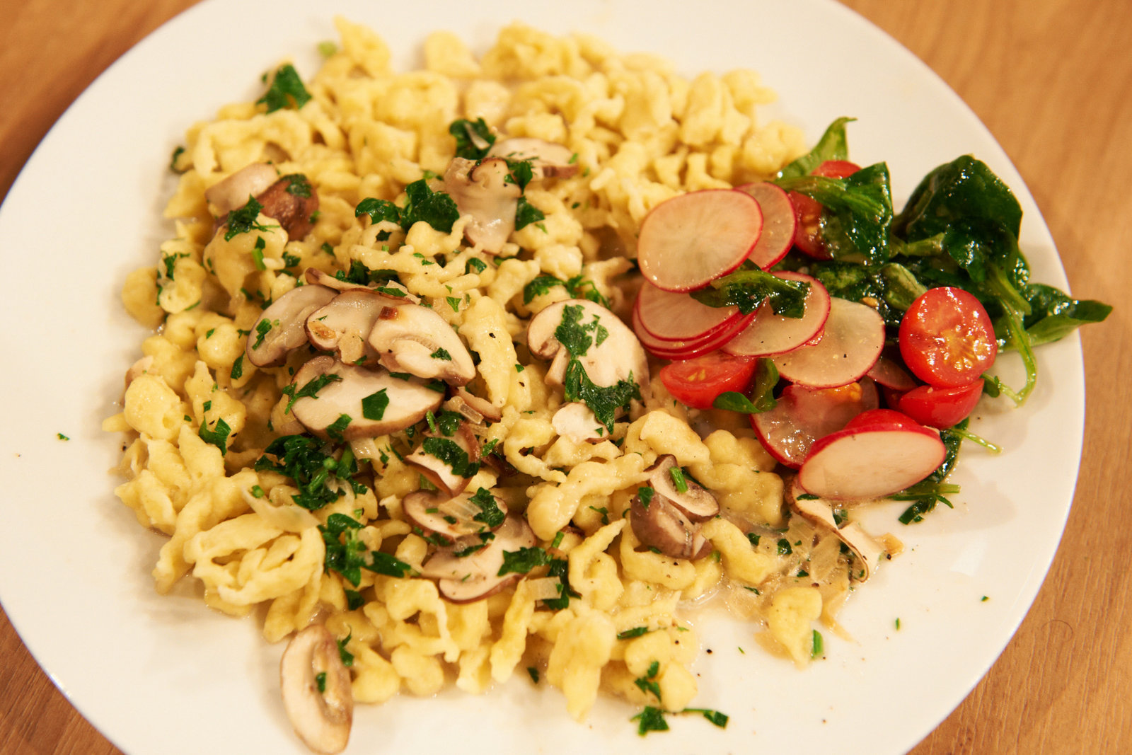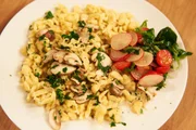 Horst Lichter sucht den SpitzenkochSelbstgemachte Knöpfle mit Champignonsauce und Feldsalat Leibgericht von Isabella ReindlBild: © ZDF und Gunnar Nicolaus