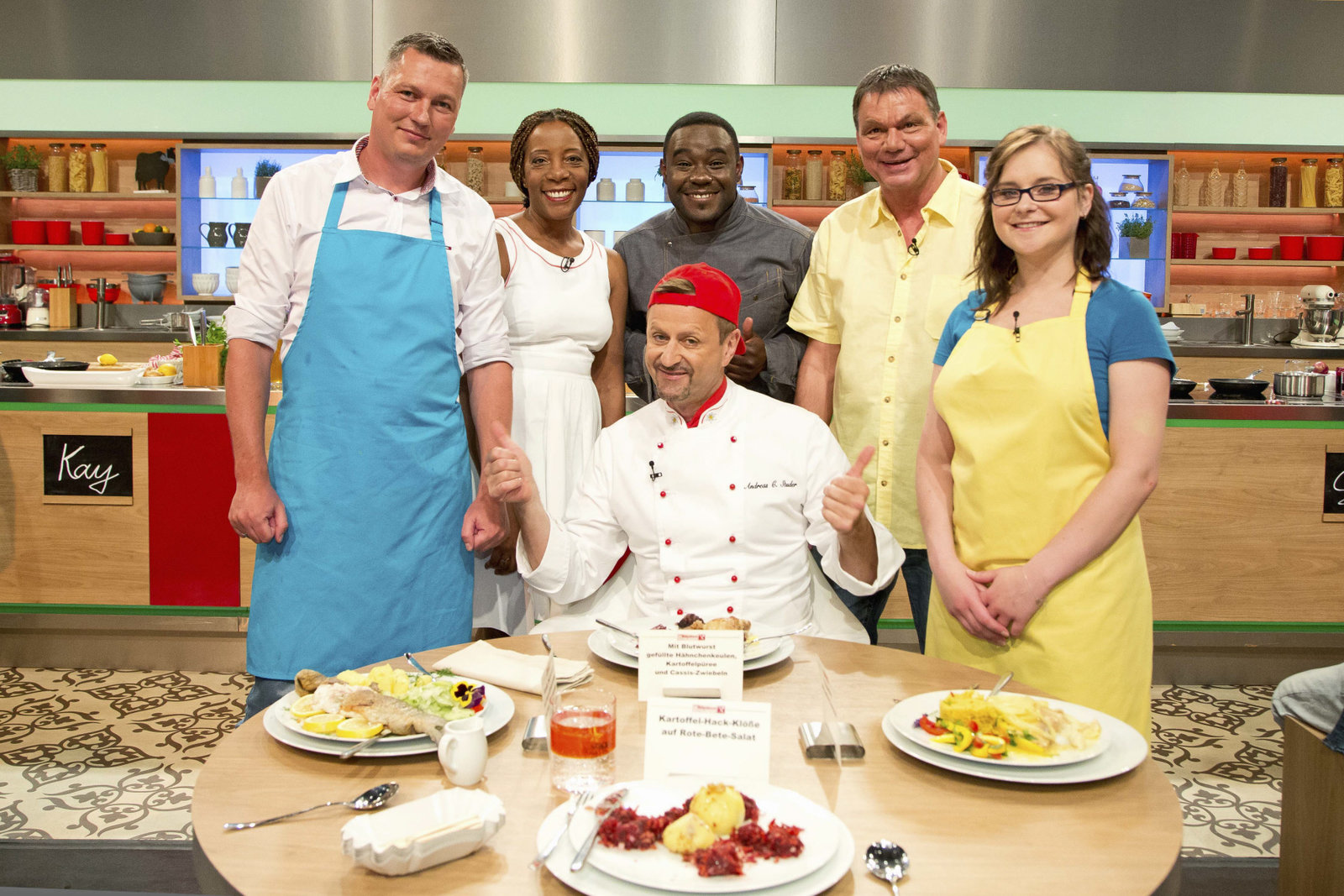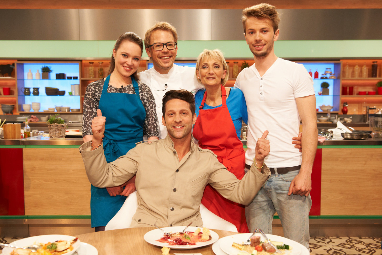 Alfons Schuhbeck sucht den SpitzenkochAnna Schiller, Jörg Wiegand, Angela Schütt-Reiprich, Alfons Schuhbeck, David von Roth, Karen Stadler.Bild: © ZDF und Markus Hertrich
