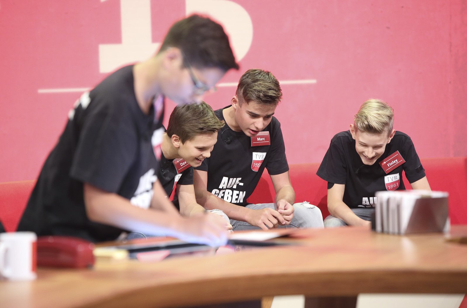 Scherzkekse - Kreisläuferv.li.: Guido Cantz, Veith Bosch, Janosch Lauth, Nick Zimmerle und Zoé Zimmerle von der HSG Triefels.Bild: © SWR/Bavaria/Frank Hempel