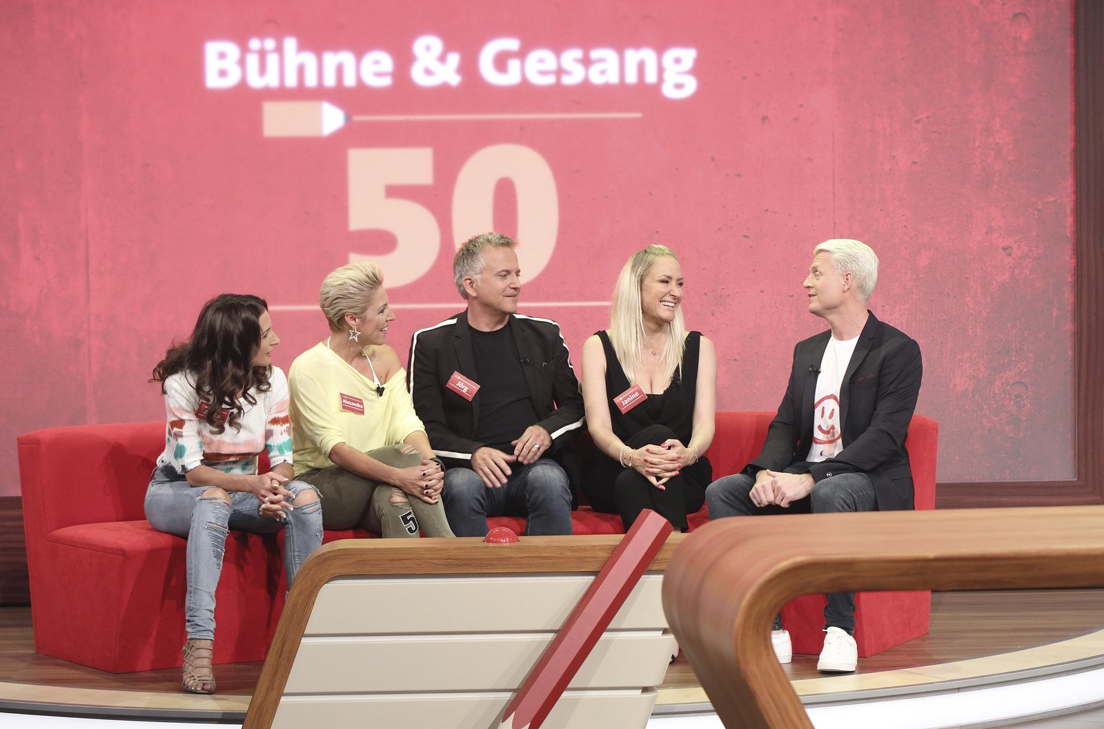 Bühne & Gesang - Zeit & Kompassv.li. Anita Hofmann, Alexandra Hofmann, Jörg Knör, Janine Kunze und Guido Cantz.Bild: © SWR/Bavaria/Frank Hempel