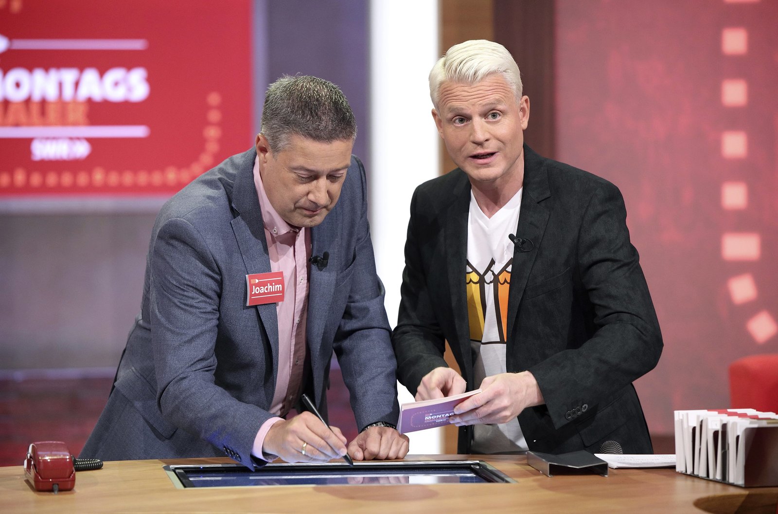 Wetterfrösche - SchlaufüchseDie „Montagsmaler“ sind wieder da. Ab August 2018 zeigt das SWR Fernsehen 40 neue Folgen des TV Klassikers, präsentiert von Guido Cantz. In jeder Sendung tritt ein Team von vier Prominenten gegen acht Kandidaten aus dem Südwesten an – vier Kinder und vier Erwachsene. Und wieder dreht sich alles um die Frage: Wer malt und rät am besten? Guido CantzBild: © SWR/Bavaria/Frank Hempel