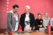 Tanzbein - TonleiterIn jeder Sendung tritt ein Team von vier Prominenten gegen acht Kandidaten aus dem Südwesten an – vier Kinder und vier Erwachsene. Und wieder dreht sich alles um die Frage: Wer malt und rät am besten? Joachim Llambi (li.) und Guido Cantz.Bild: © SWR/Bavaria/Frank Hempel