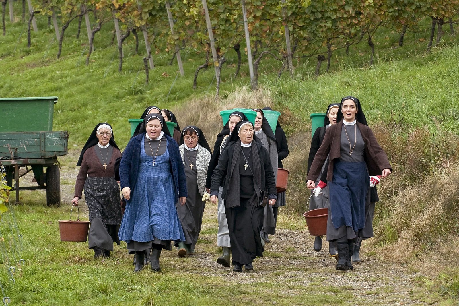 Eine Leiche in der KapelleARD/SWR DIE NONNE UND DER KOMMISSSAR - VERFLUCHT, FilmMittwoch, Fernsehfilm Deutschland 2012, Buch: Martina Brand, Regie: Berno Kürten, am Mittwoch (07.03.12) um 20:15 Uhr im ERSTEN. Am Weinstock des Herrn sollen die Trauben nicht verdorren! Oberin Ludwiga (Brigitte Janner) beschließt, dass die Nonnen den Feuerbachs bei der Lese helfen und setzt ihren Plan energisch in die Tat um.Bild: © SWR/Stehanie Schweigert
