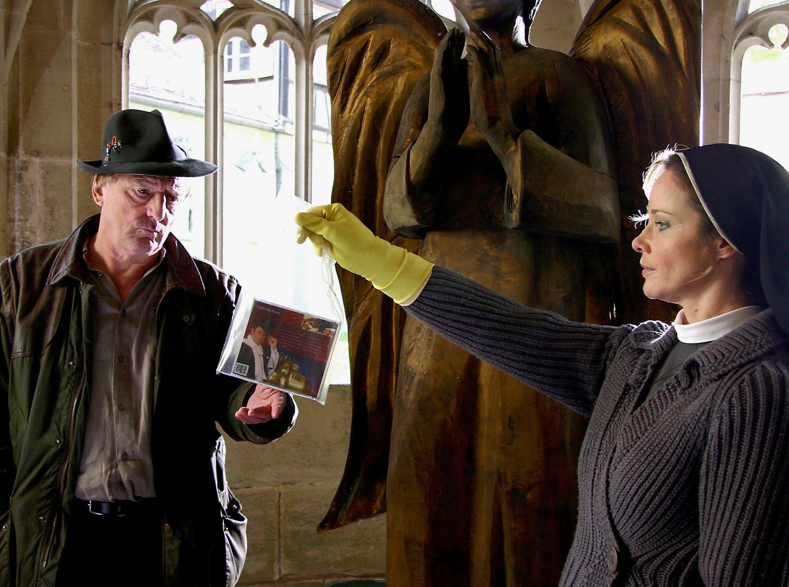 Eine Leiche in der KapelleDie Nonne und der Kommissar - Der gefallene Engel Beweismaterial: Günther Maria Halmer als Kommissar Josef Baumert, Ann-Kathrin Kramer als Schwester CamillaBild: © SRF/SWR
