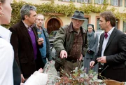 VerfluchtZum großen Entsetzen von Winzer Magnus Feuerbach (Mathias Herrmann, re.) stoppt Kommissar Baumert (Günter Maria Halmer) die Weinverkostung auf dem Hofgut. Es gibt Anzeichen dafür, dass der Wein gepanscht ist. Für die Feuerbachs eine Katastrophe, denn die Verkostung ist so wichtig für das Jahresergebnis des Betriebs. Camilla (Ann-Kathrin Kramer), wie stets zur Stelle, wenn etwas Wichtiges passiert, gibt die Weinpanscherei zu denken.Bild: © ORF