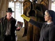 TodesengelSchwester Camilla (Ann-Kathrin Kramer) war mal wieder schneller als der Kommissar (Günther Maria Halmer, li.). Mit ihren Indizien will sie dem notorisch skeptischen Baumert beweisen, dass der Kreuzgang der Tatort war. Danni Köhler (Lars Gärtner, re.).Bild: © ORF
