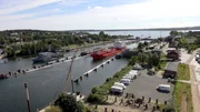 Wohnmobilstellplatz mit Schleusenblick an der FördeBild: © NDR