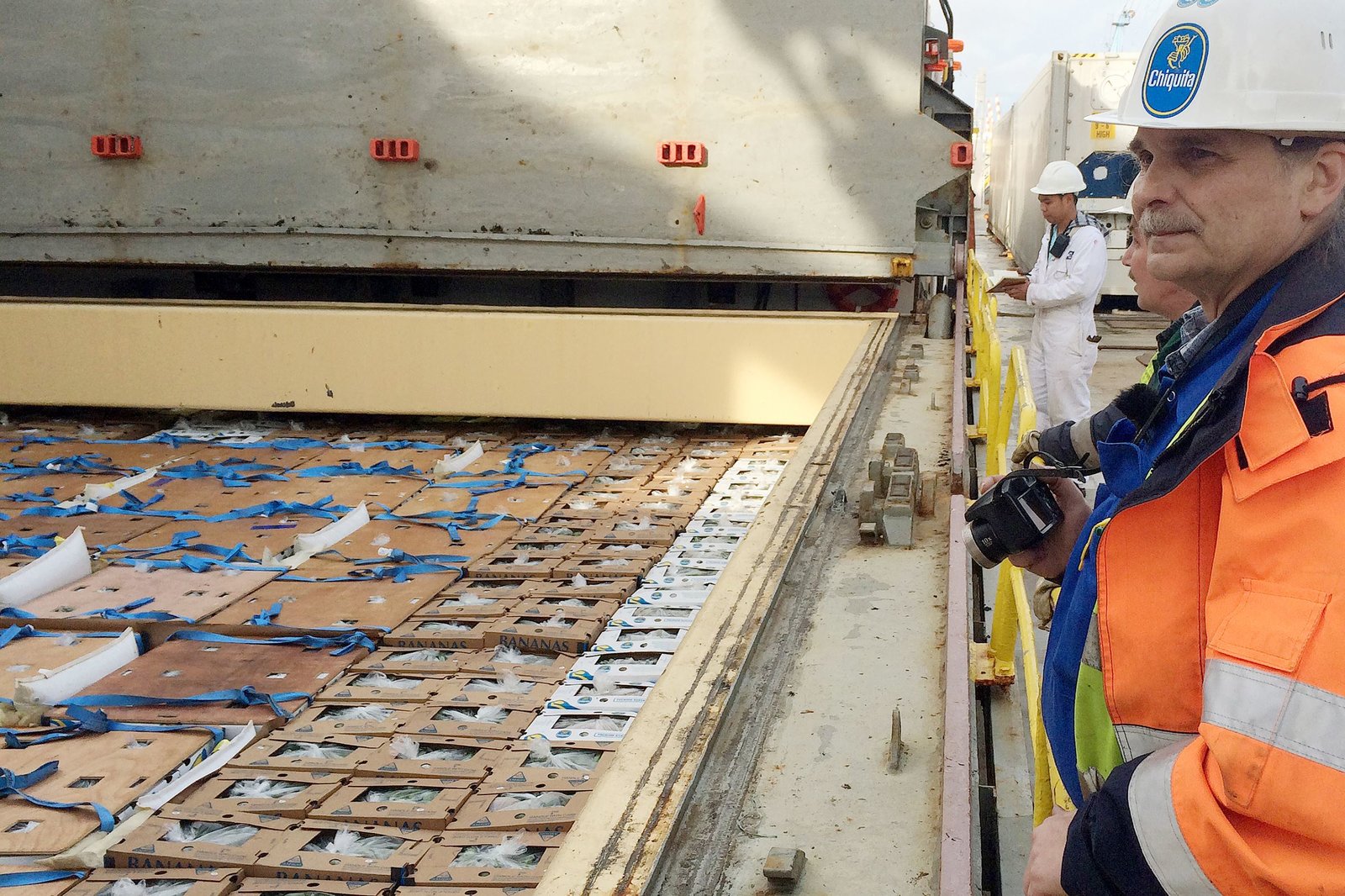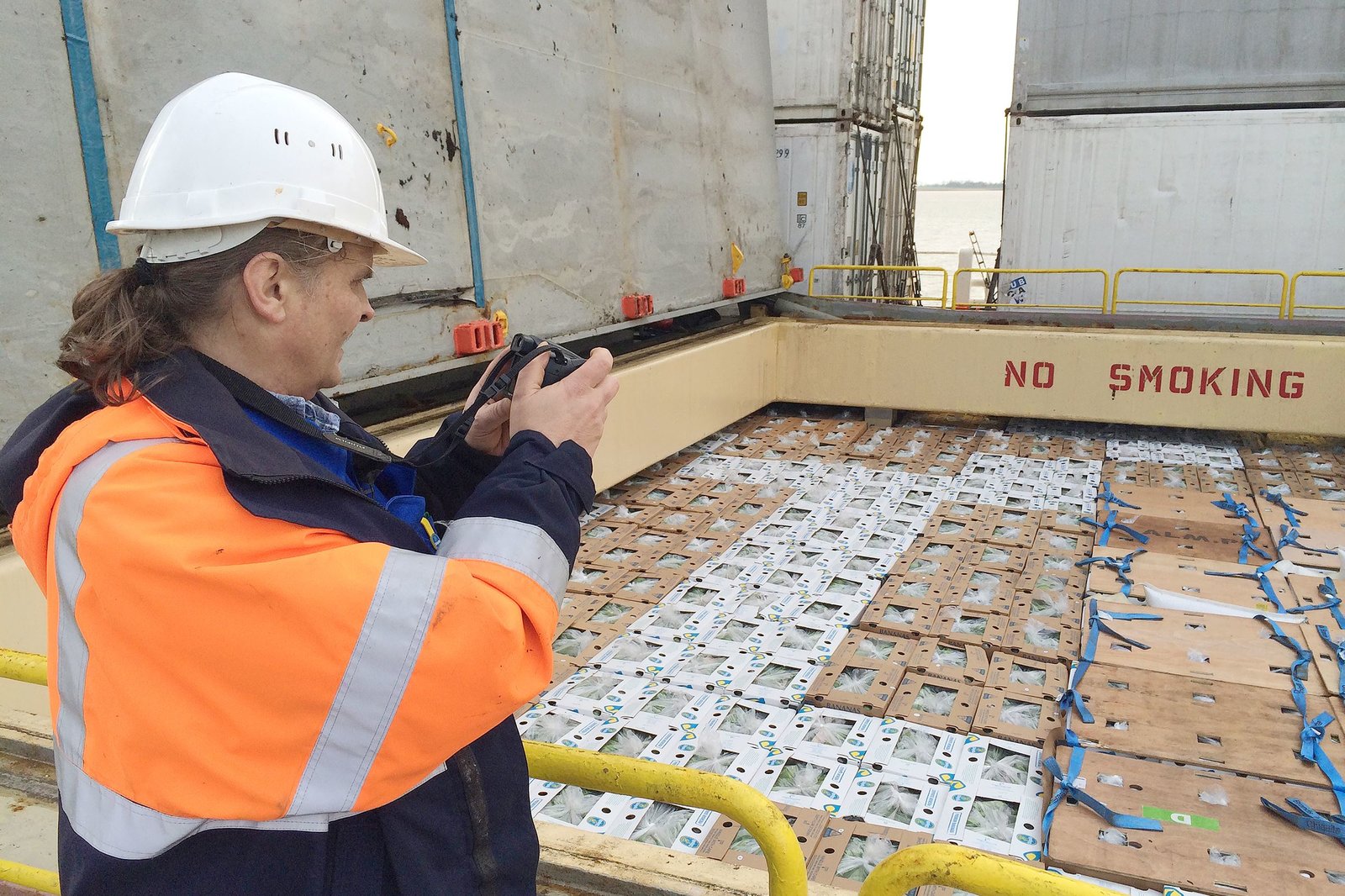 NDR Fernsehen DIE NORDREPORTAGE: BANANEN-ALARM AN DER KAJE , "Film von Jens Brombach", am Montag (09.02.15) um 18:15 Uhr. Axel Krüger fotografiert und dokumentiert die ankommenden Bananen schon auf dem Schiff. Ist ein Karton beschädigt oder verschmutzt, muss er aussortiert werden. Jede aussortierte Ware wird an die Zentrale gemeldet. Ort: Bremerhaven, Kaje des FruchtterminalsBild: © NDR/Jens Brombach