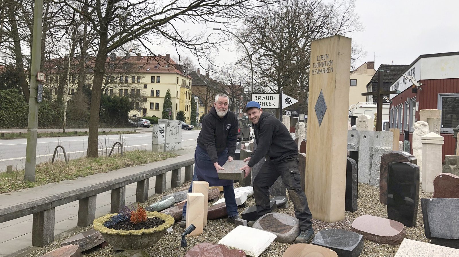 Steinmetz Kay Birkefeld und Lehrling Dennis Otte.Bild: © NDR/ECO Media
