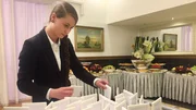 Franca spielt Essens-Memory: Kabile Palau, ganzes Lamm, ganzer Lachs - für jedes Gericht gibt es ein Schild. Damit jeder weiß, was er isst. Weitere Fotos erhalten Sie auf Anfrage.Bild: © NDR/Stennerfilm GmbH & CoKG.
