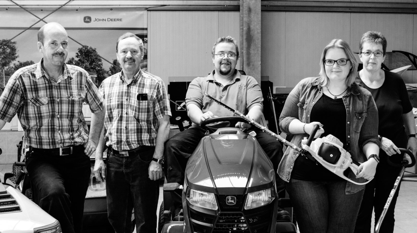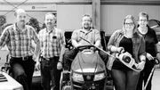 Der Familienclan Schade. v.l.n.r.: Sönke Schade, Geschäftsführer; Gerd Uwe Schade, Geschäftsführer (scheidet in diesem Jahr aus); Oliver Schade, Sohn von Sönke und Fachmann für Mähroboter; Sabine Schade, Tochter von Sönke und Büroleitung; Eike Schade, Frau von Sönke und Bürokauffrau. Weitere Fotos erhalten Sie auf Anfrage.Bild: © NDR/Kick'n'Rush/daus:konzept GmbH