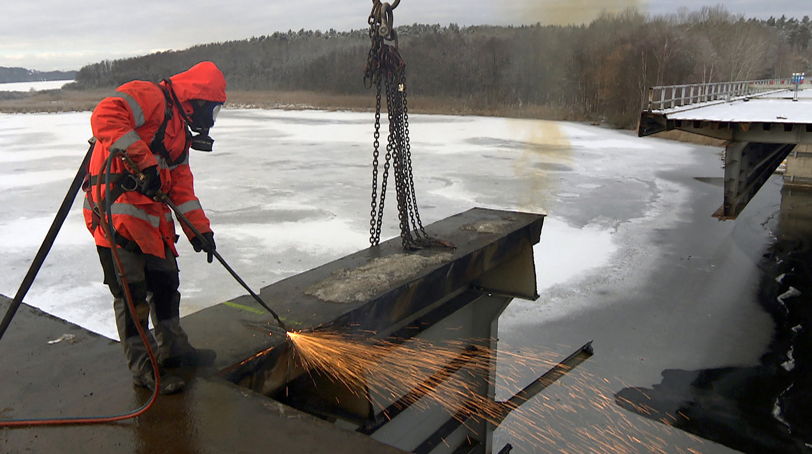 Die halb abgerissene Brücke.Bild: © NDR/MIRAMEDIA