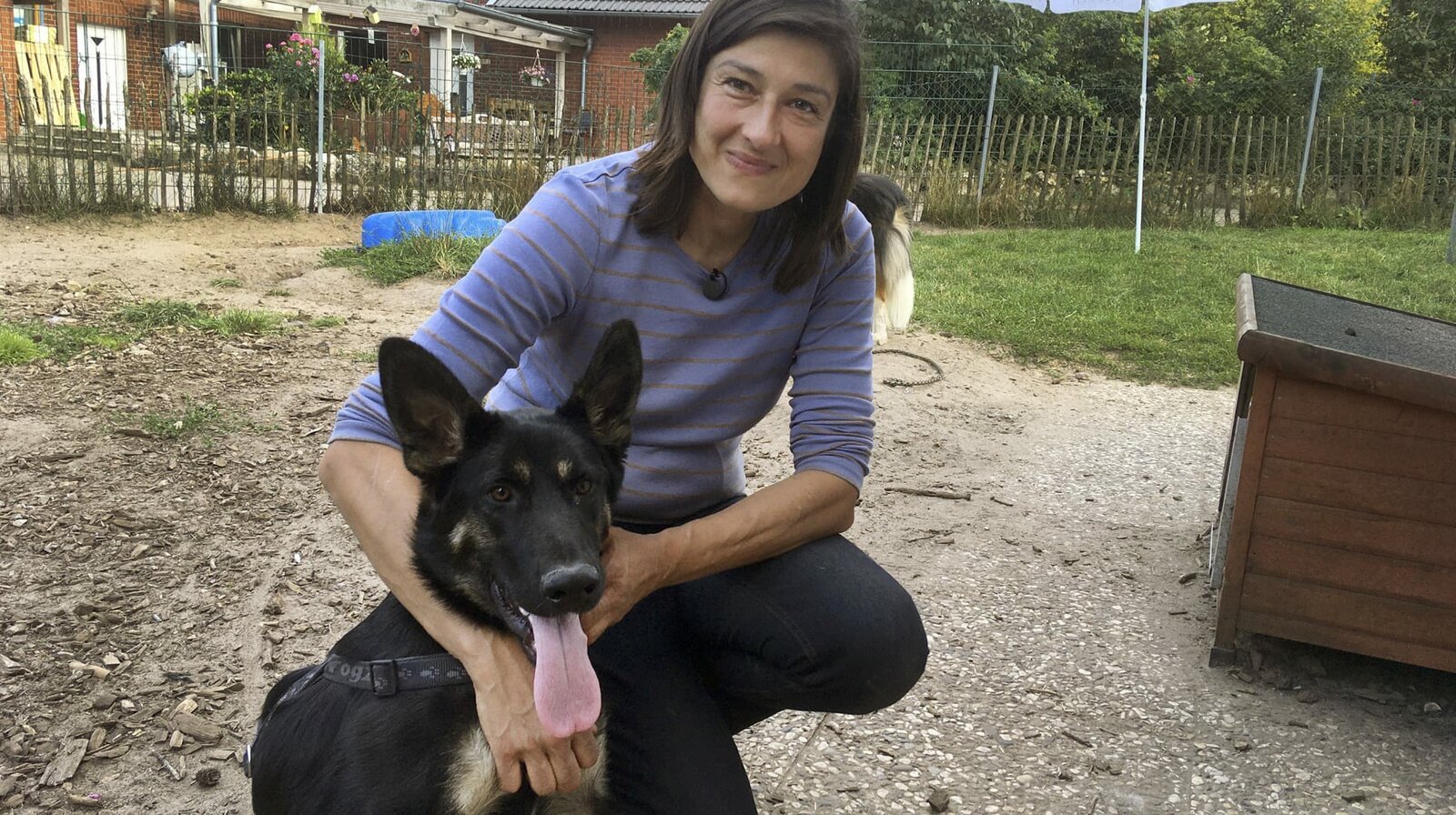 Dr. Usha Peters mit Neuankömmling Shadow. Der sieben Monate alte Schäferhundmischling hat eine Wirbelsäulenfehlbildung und soll mit Bewegungstherapie und einem Rolli-Wagen wieder neuen Lebensmut bekommen.Bild: © NDR/Miramedia/Elke Bille