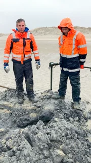 Hans Warfsmann arbeitet seit 35 Jahren als Munitionssucher. Eine Stielgranate ist auch für ihn ein seltener Fund.Bild: © NDR/nonfictionplanet