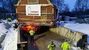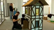 Nach vier langen Tagen endlich am Ziel müssen die Translozierer hoch konzentriert arbeiten, um das Haus auf den Keller zu platzieren.Bild: © NDR/DHF Media GmbH/Christian Brandt