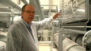 Kurz vor Fertigstellung des neuen OSPA-Gebäudes in Kritzmow bei Rostock, schließt Aquarienbauer Reincke die verborgene Filteranlage im Untergeschoss des Reetdach-Aquariums an. (Bild: © NDR/Extra Vista