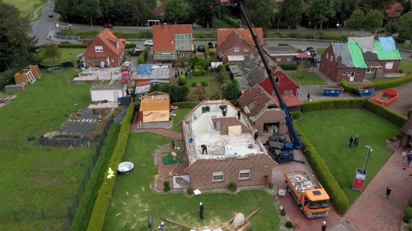 Drohne über dem Haus von Familie Graver, aufgenommen am Freitag, 20.08.2021. Die Bauarbeiten am Haus schreiten voran.Bild: © NDR