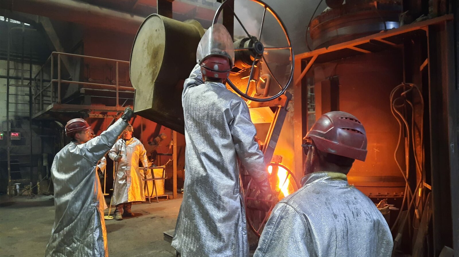 NDR Fernsehen DIE NORDREPORTAGE: DIE EISENGIESSER, am Dienstag (11.01.22) um 18:15 Uhr. Mit sogenannten Pfannen bewegen die Eisengießer in Goslar das flüssige Eisen durch die Halle und gießen es in die Formen. (Bild: © NDR/DHF Media GmbH/Christina Geo / NDR Presse und Information