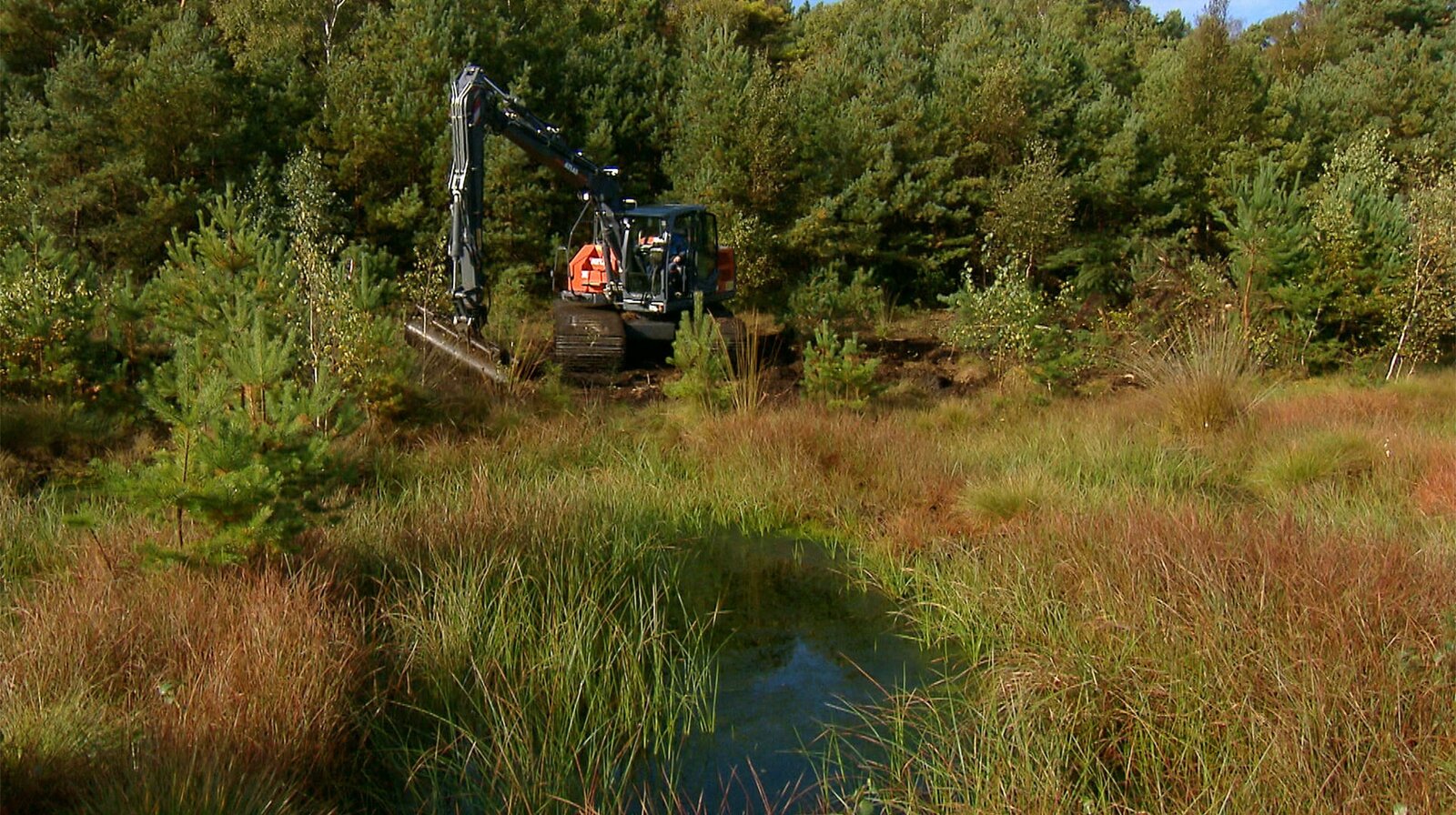 Mit schwerem Gerät: Dammbauten sollen im Toten Moor für noch mehr Nässe sorgen. (Bild: © NDR/erdmanns Filmproduktion