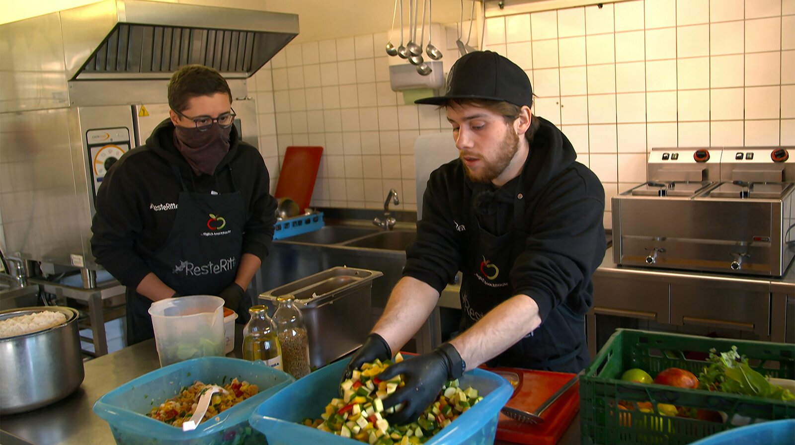 Die mittlerweile preisgekrönte Idee der Reste-Ritter ist während eines Studienprojekts geboren. Seitdem sind Nick Eßwein und Moritz Dietzsch fast täglich im Kampf gegen Lebensmittelverschwendung aktiv.Bild: © NDR/Produktion Clipart