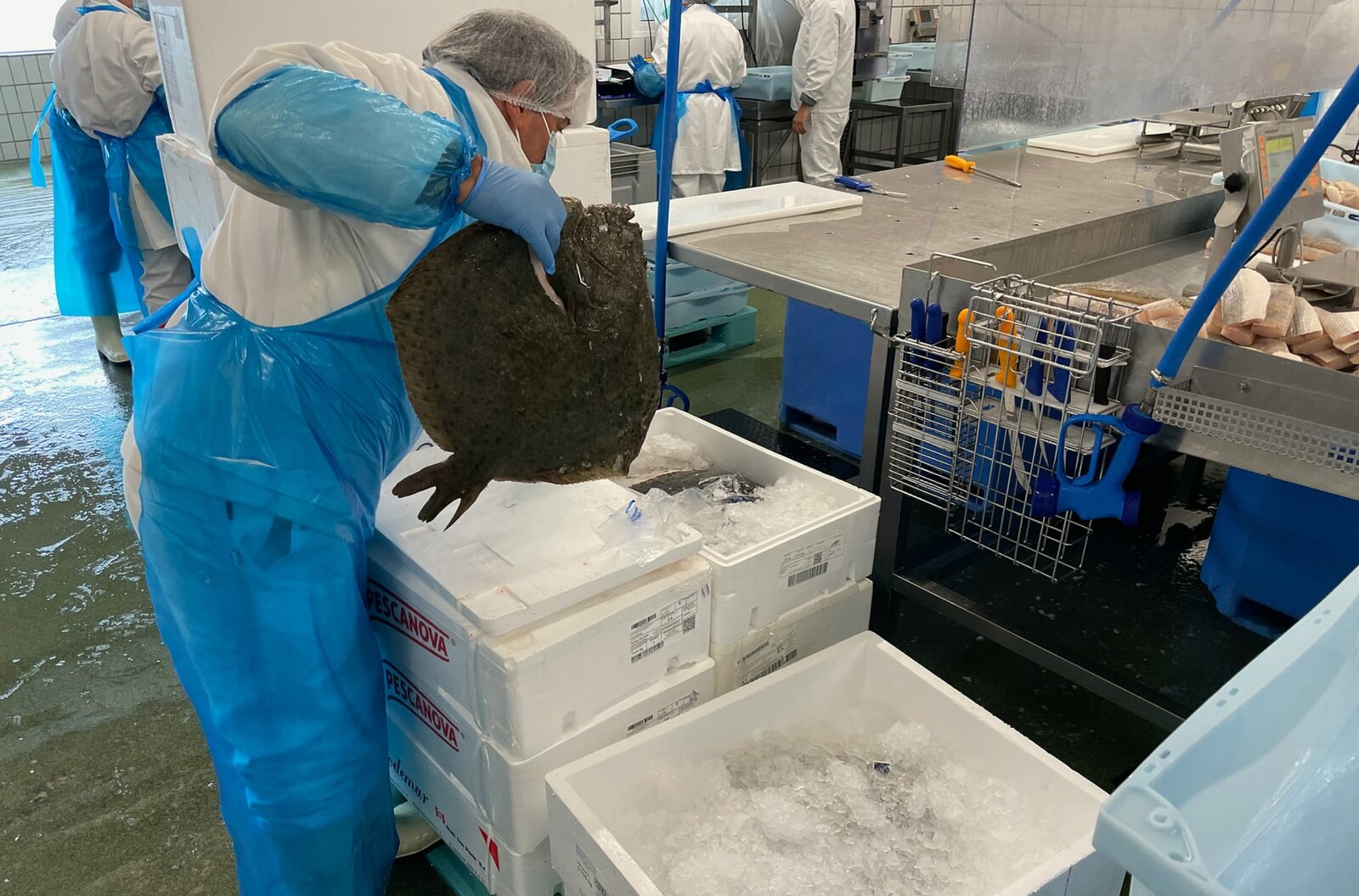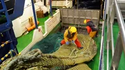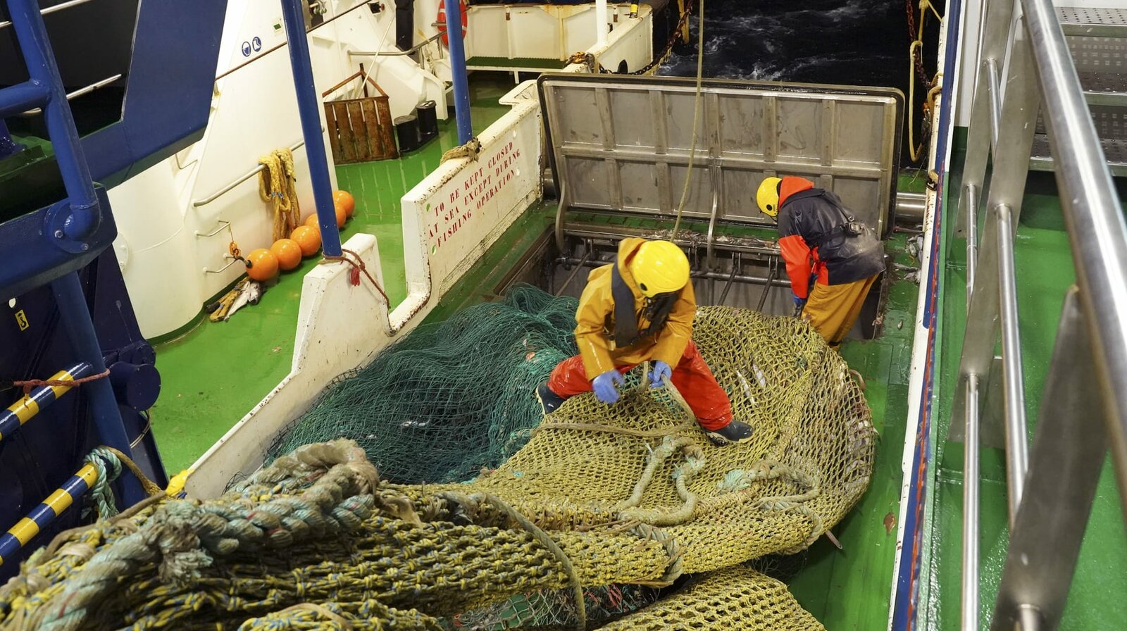 Die Männer arbeiten rund um die Uhr - geschlafen wird nur, wenn der Fisch verarbeitet wurde und auf den nächsten Hol gewartet wird.Bild: © NDR/Candeo
