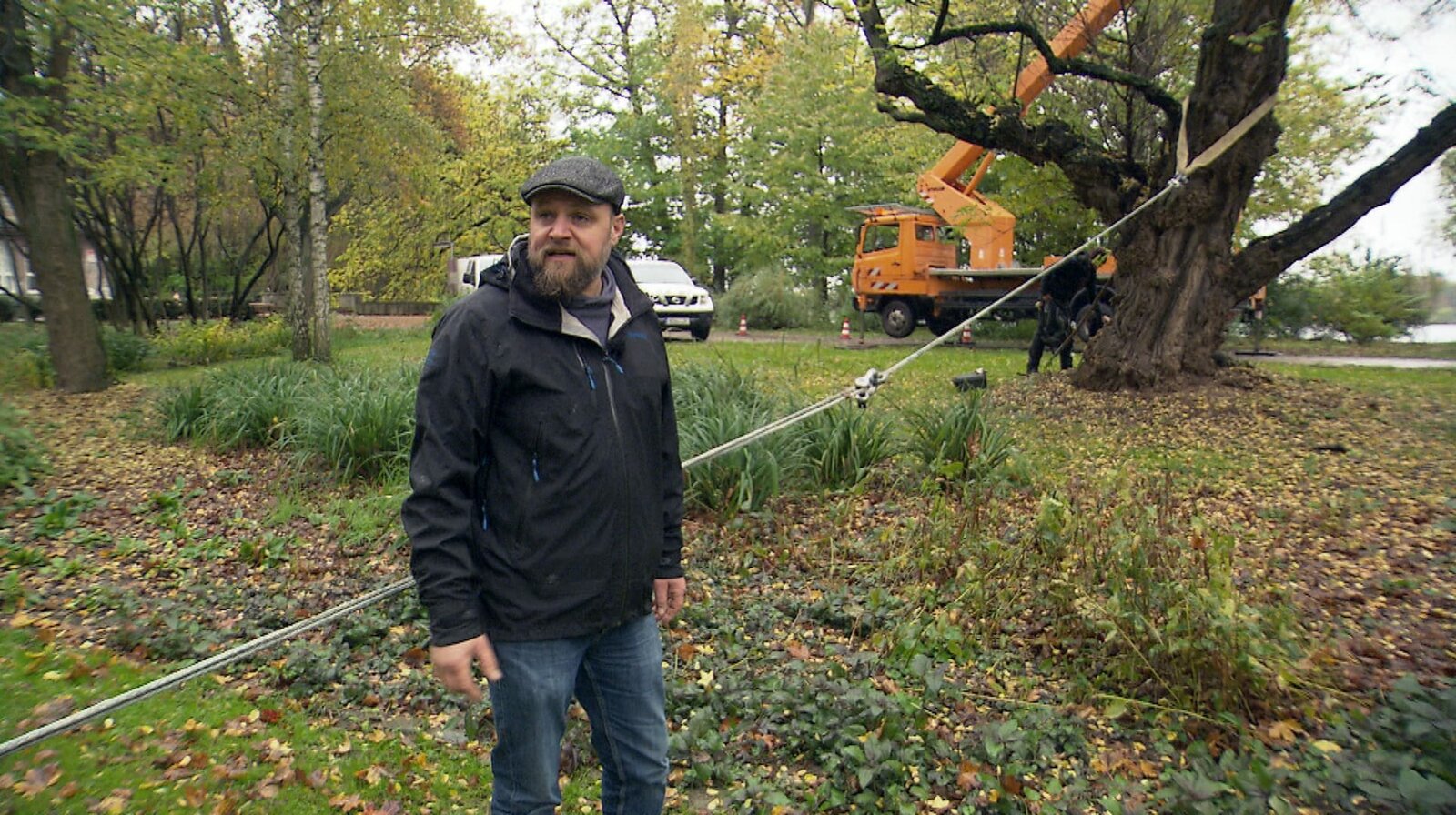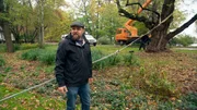 Wie sicher ist die alte Robinie am Maschsee: Mit einem High-Tech-Seil simulieren die Baum-Experten der Stadt Hannover einen Herbststurm.Bild: © NDR/Kamera Zwei/Malte von der Brelie