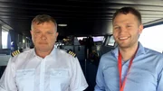 Gleich beginnt Lukas Möller Rönisch mit den Crewtraining für den bulgarischen Kapitän Dimitar Dimitrov und seine Mannschaft auf der Schnellfähre "SKANE JET"Bild: © NDR/Clip film- und fernsehproduktion
