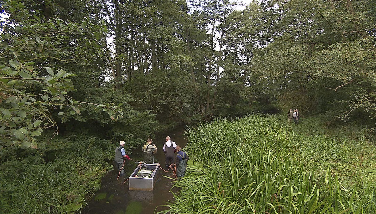 Das Elektrofischen in der Seeve macht allen viel Spaß.Bild: © NDR/MfG-Film GmbH