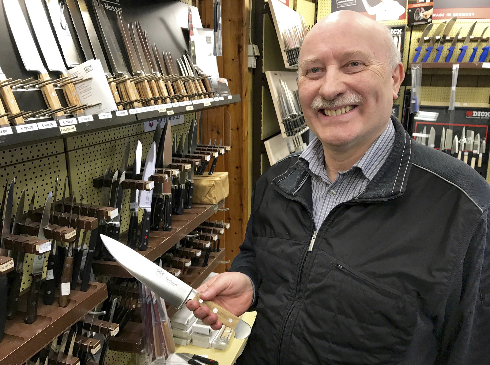 Friedrich Jürges ist Inhaber der ältesten Messerschleiferei in Hamburg. Das Traditionsunternehmen wurde 1919 von seinem Großvater gegründet. Weitere Fotos erhalten Sie auf Anfrage.Bild: © NDR/Veit Bentlage
