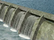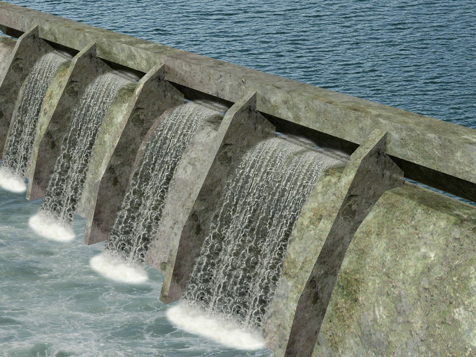 3d render of a water dam with flowing water.Bild: © aloysius patrimonio / patrimonio designs limited