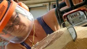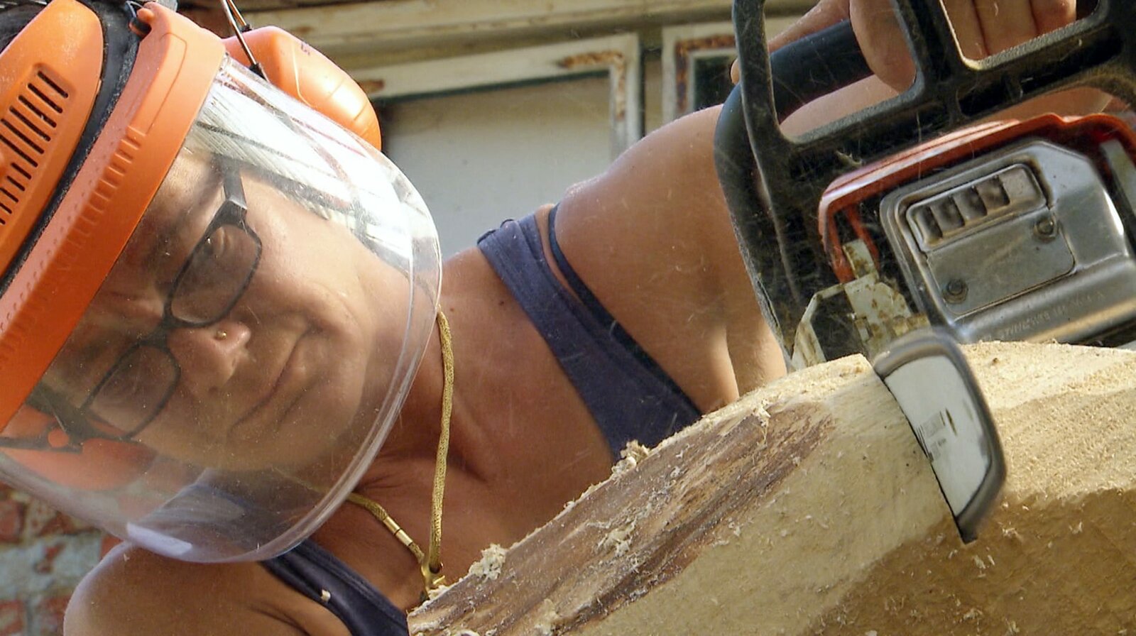 Herrenhäuser in FrauenhandSchnitzen mit der Motorsäge ist nur ein ungewöhnliches Hobby von Gutsherrin Friederike Antony.Bild: © NDR