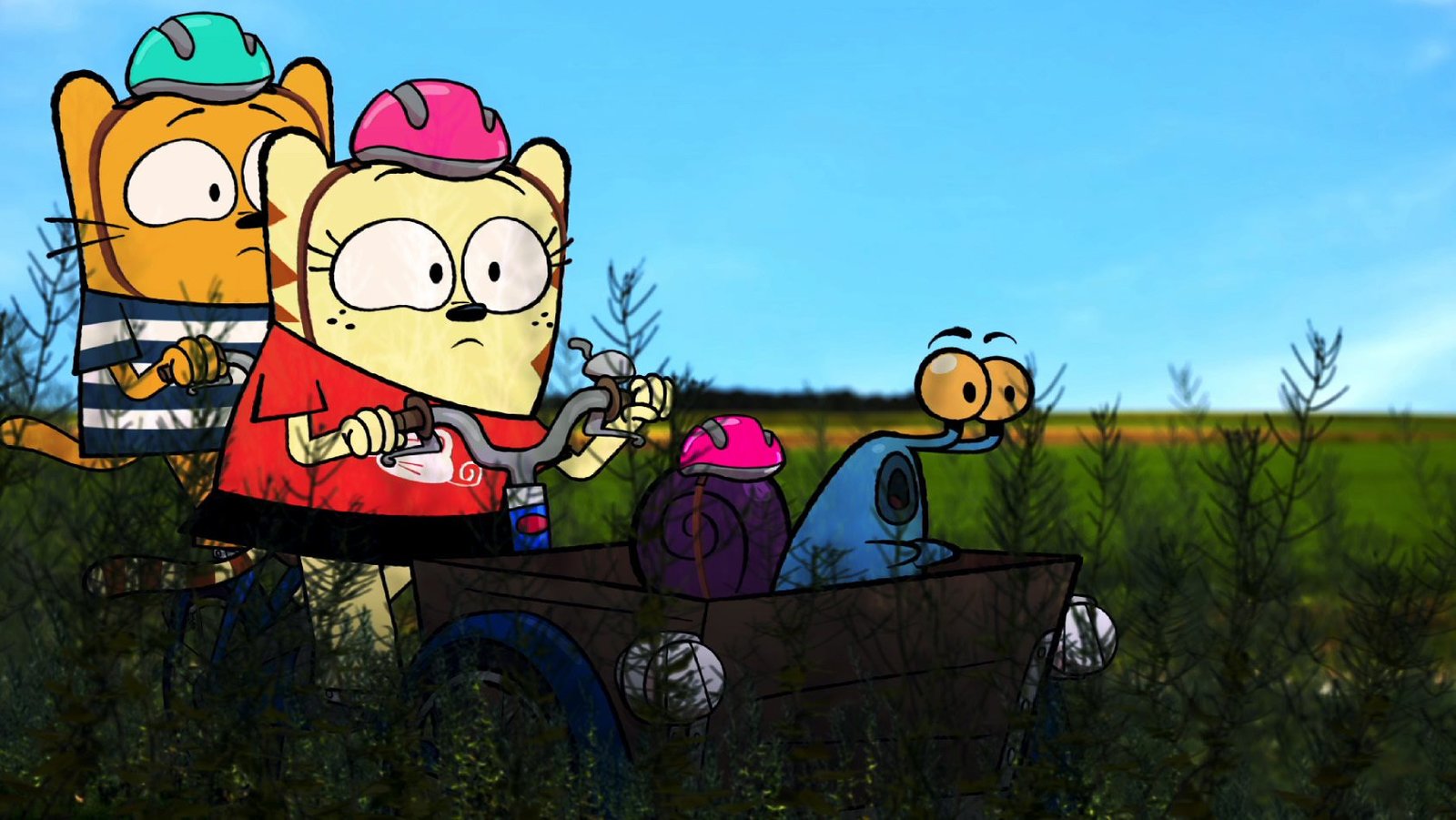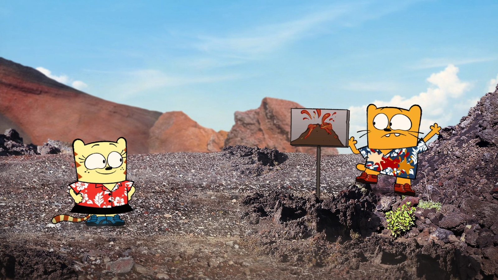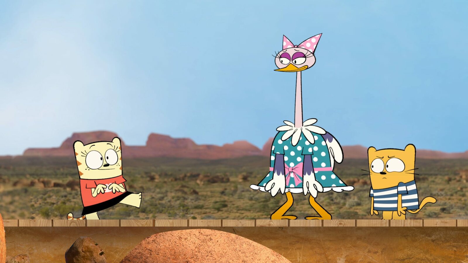 Zwei Katzen am Kap"Die Ollie & Moon Show", "Zwei Katzen am Kap." Ollie ist traurig, als seine Blumen verblühen. Um ihn aufzuheitern, will Moon ihm eine Überraschung bereiten. Ohne ihm zu sagen, wohin es geht, reist sie mit ihm nach Südafrika. Dort soll es an der Garten-Route ein Meer voller Blumen geben. Doch als sie ankommen, ist Moon alles andere als vorbereitet. Sie vergisst den Proviant und kann noch nicht mal sagen, wann die Blumen blühen werden. Moons Überraschung droht ins Wasser zu fallen.Bild: © ORF/Studio 100 Media