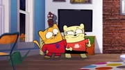 Die Bergrettungs-Katzen"Die Ollie & Moon Show", "Die Bergrettungs-Katzen." Als Ollie und Moon von der heldenhaften Rettung eines Vogelkükens hören, möchten sie auch gute Taten vollbringen. Während Ollie dabei eher an eine ehrenamtliche Tätigkeit denkt, ist Moon sofort im Superhelden-Modus. Zufällig hat Stanley einen Freund in der Schweiz, der bei der Bergrettung arbeitet. Doch um Bergretter zu werden, müssen Ollie und Moon erst einen Test bestehen.Bild: © ORF 1