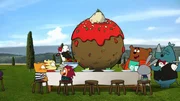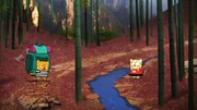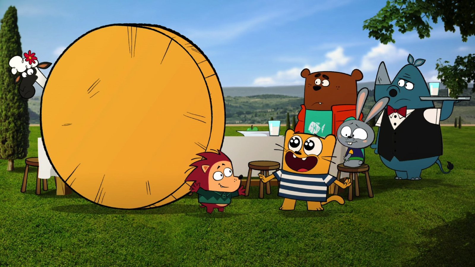 Picknick mit Pfannkuchen"Die Ollie & Moon Show", "Picknick mit Pfannkuchen." Ollie und Moon feiern Pfannkuchen-Tag. Dabei erinnern sie sich an das erste Mal, als sie zusammen einen Pfannkuchen gegessen haben. Jetzt fehlt nur noch ein besonderer Sirup dafür. Also reisen sie extra für ein Picknick nach Kanada, um dort auf einer Farm echten Ahornsirup zu bekommen. Doch die beiden haben keine Ahnung, wie man an den leckeren Sirup der Bäume gelangt.Bild: © ORF/Studio 100 Media