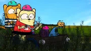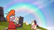 Glücksklee gesucht"Die Ollie & Moon Show", "Glücksklee gesucht." Ollie möchte ein Vierblättriges Kleeblatt auf die Geburtstagskarte für seine Tante Schnurr malen. Doch ihm fehlt eine richtige Vorlage. Ihm gelingt stets nur ein Kleeblatt mit drei Blättern. Also fliegen Ollie und Moon nach Irland. Denn an keinem Ort wächst mehr Klee als auf der Grünen Insel. Doch um diesen Glücksklee zu finden, braucht man in erster Linie - Glück!Bild: © ORF/Studio 100 Media