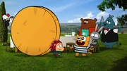 Mission Mischka"Die Ollie & Moon Show", "Mission Mischka." Moon findet im Park ein Spielzeug - den sprechenden Teddybären Mischka. Ollie entdeckt, dass der Bär ein Namensschild hat. Der Ort, aus dem sein Besitzer stammt, ist darauf deutlich zu lesen: Belkovo in Russland. Doch anders als sonst will Moon nicht sofort zum Flughafen rasen und losfliegen. Sie möchte Mischka viel lieber behalten und sucht nach allen möglichen Vorwänden, um nicht nach Belkovo reisen zu müssen.Bild: © ORF 1