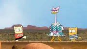 Klopfende Kängurus"Die Ollie & Moon Show", "Klopfende Kängurus." Ollie glaubt, dass Kängurus mit ihren Beinen Klopfgeräusche machen können. Moon hingegen denkt eher, dass Kängurus mit der Zunge schnalzen können. Um dies zu klären, reisen die beiden Freunde nach Australien und schließen eine Wette ab: Wer zuerst ein Känguru sieht, wird zum Champion des Tages! Doch dabei vergessen die beiden, alles andere zu bewundern, was Australien zu bieten hat.Bild: © ORF/Studio 100 Media