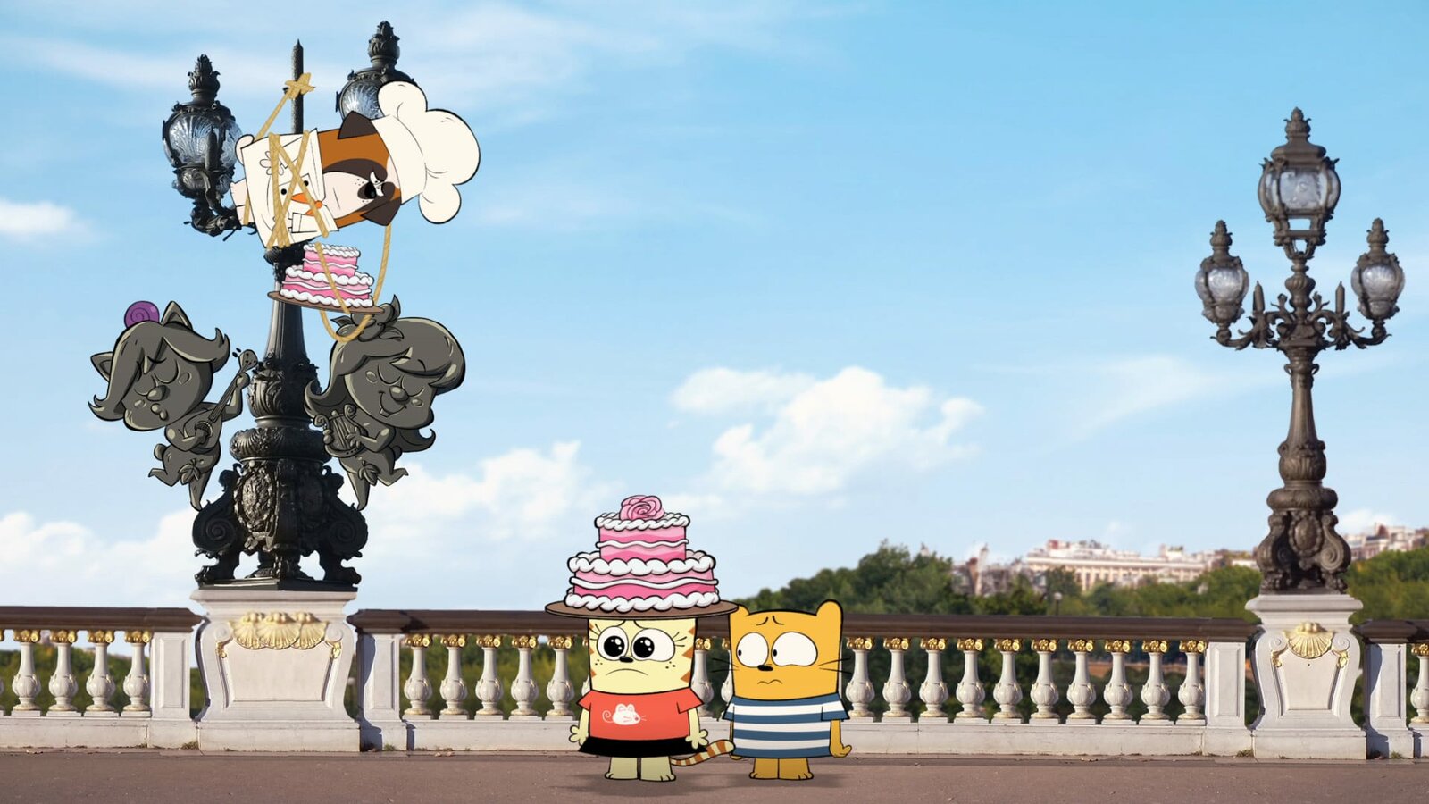 Torten-Trip nach Paris"Die Ollie & Moon Show", "Torten-Trip nach Paris." Moon möchte unbedingt bei einem Backwettbewerb in Paris teilnehmen-. Doch vorher soll sie mit Ollie eine Torte für den Konditor Christophe ausliefern, einem Freund von Stanley. Da Moon sich bereits erwachsen fühlt, will sie alles allein bewerkstelligen und sich nicht von Ollie helfen lassen. Doch dass ist leichter gesagt als getan.Bild: © ORF/Studio 100 Media