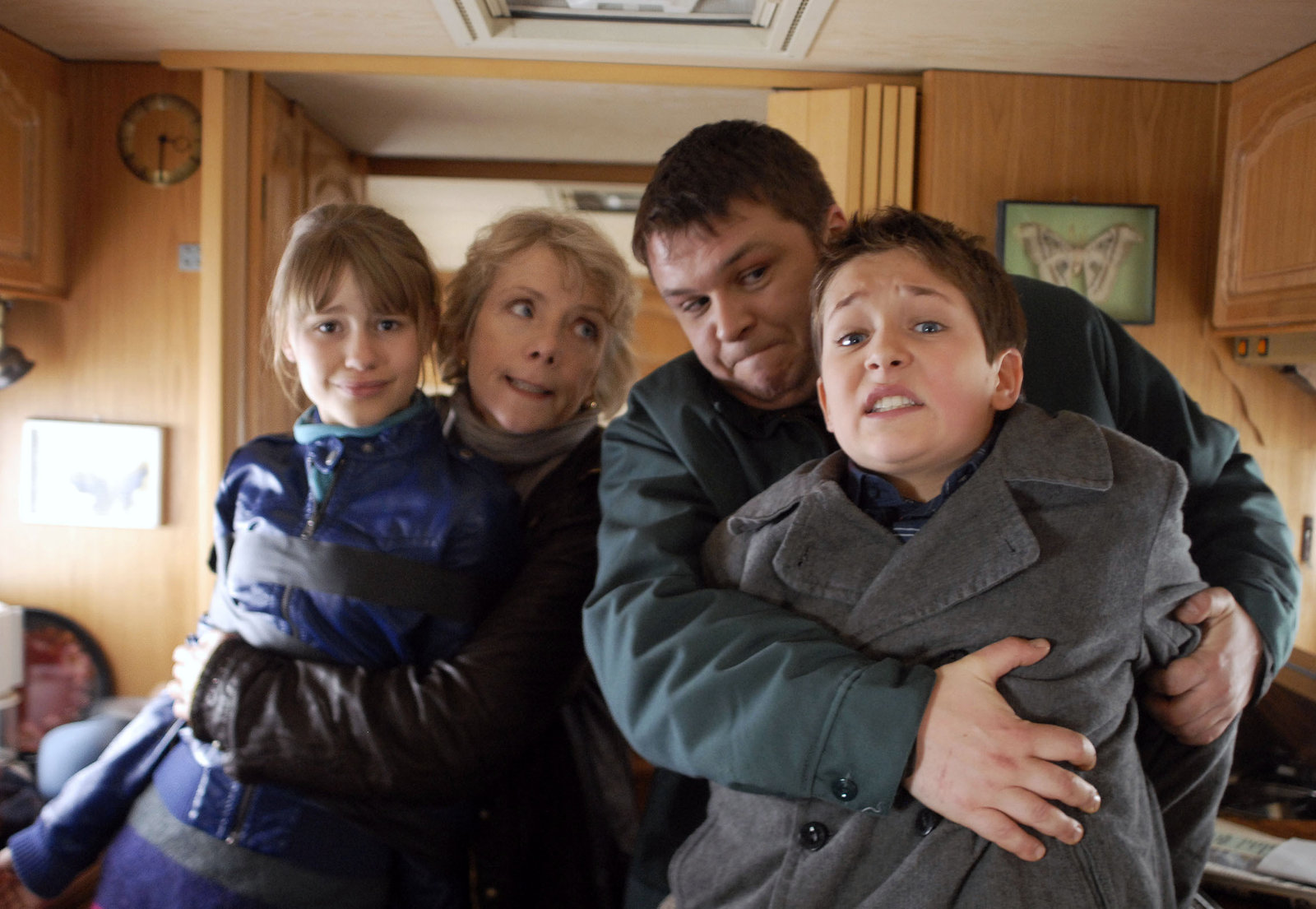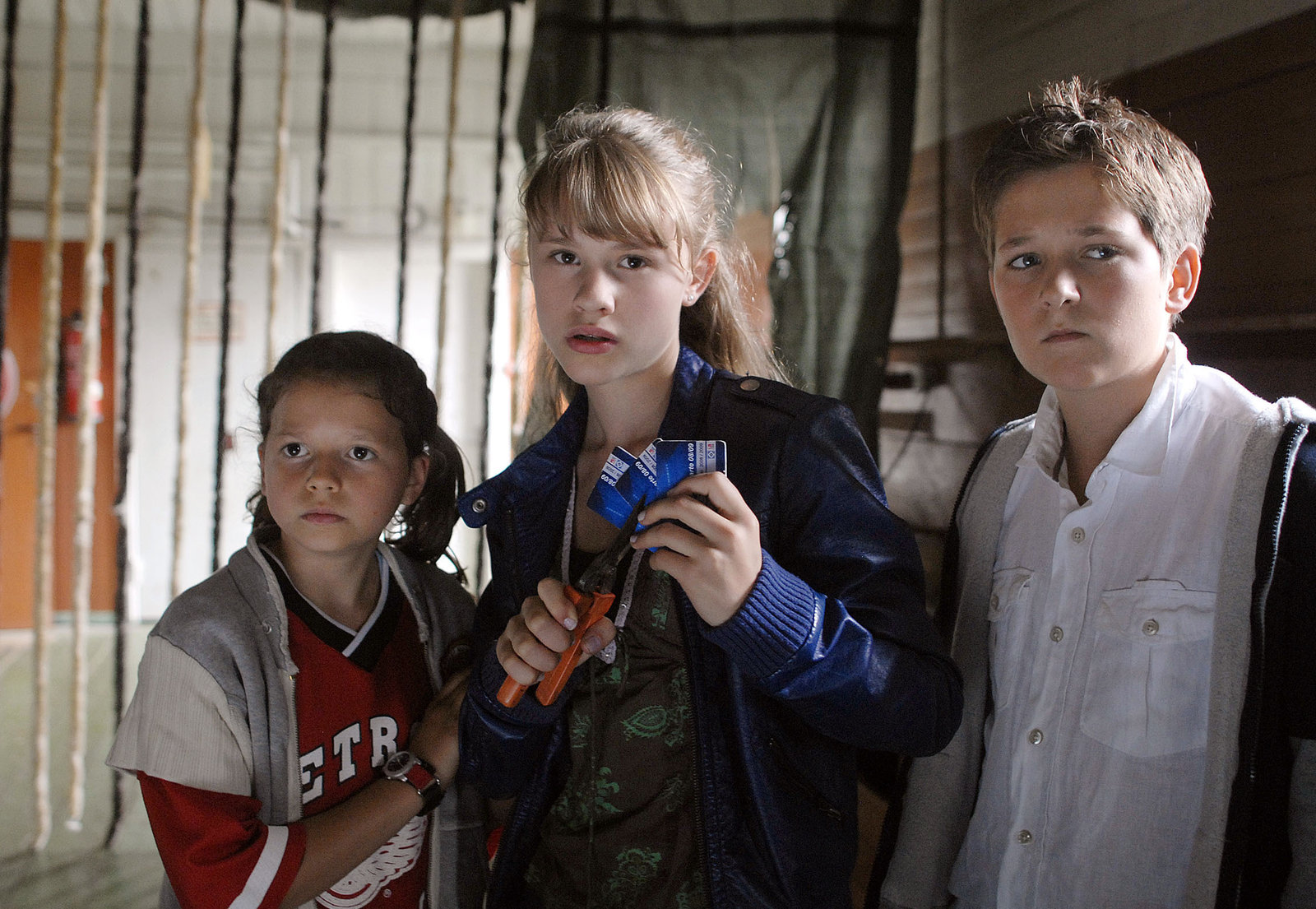 KirchenklauLilly (Laura Gabriel, links) und Laurenz (Tim Tiedemann) befinden sich in der Gewalt gefährlicher Trickbetrüger (Angelika Thomas, Björn Grundies).Bild: © NDR/Romano Ruhnau